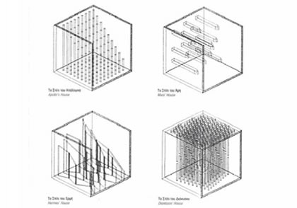 Wright in his unrealized proposal for the same site in 1954, Koulermos
